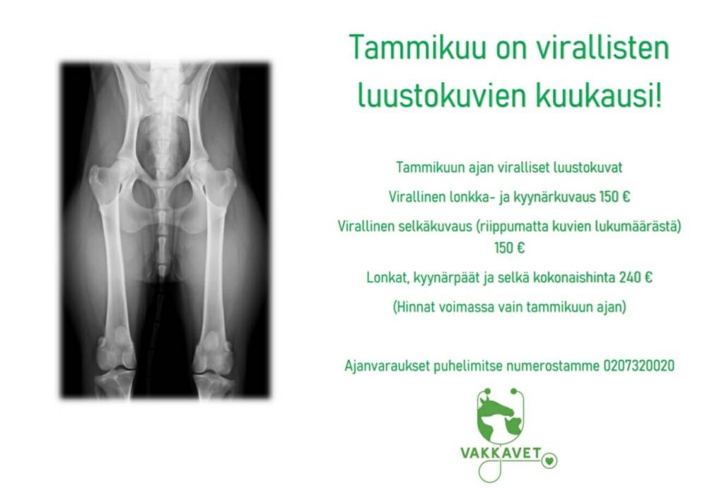 – Virallinen lonkka- ja kyynärkuvaus 150€
